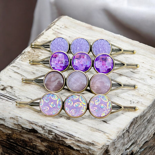 Purple Druzy Hair Pins – Set of 4 Sparkly Boho Accessories