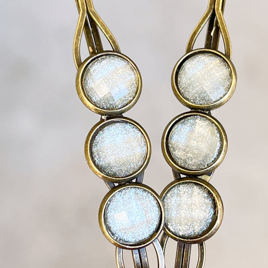 Iridescent Silver Hair Clips – Glam Boho Bronze Retro Barrettes