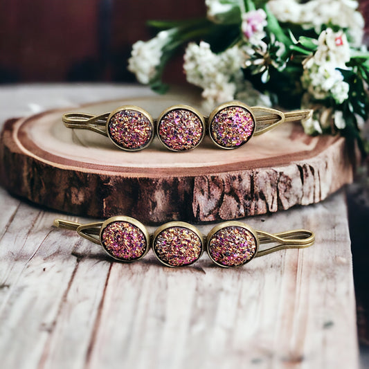 Pink Metallic Glitter Druzy Hair Pins - Sparkling & Glamorous Hair Accessories