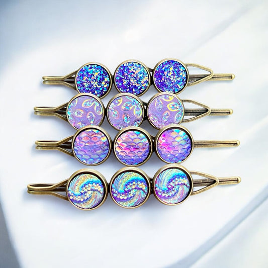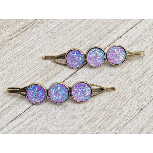 Purple Druzy Hair Pins: Set of 4 Stylish Accessories with Unique Patterns