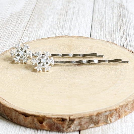 Silver Rhinestone Snowflake Hair Pins - Whimsical Bobby Pin Set