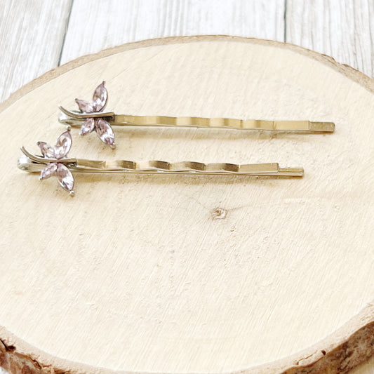 Light Pink Rhinestone Heart Hair Pins Set of 2 Romantic Bobby Pins