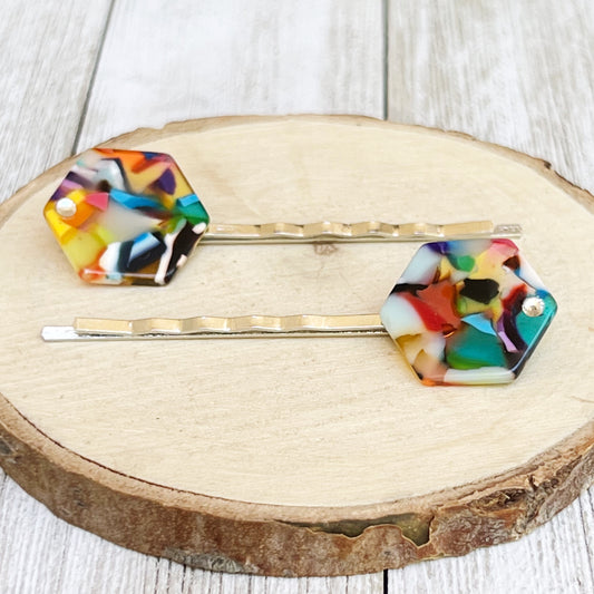 Multi Color Geometric Acrylic Hair Pins - Set of 2 Retro Bobby Pins