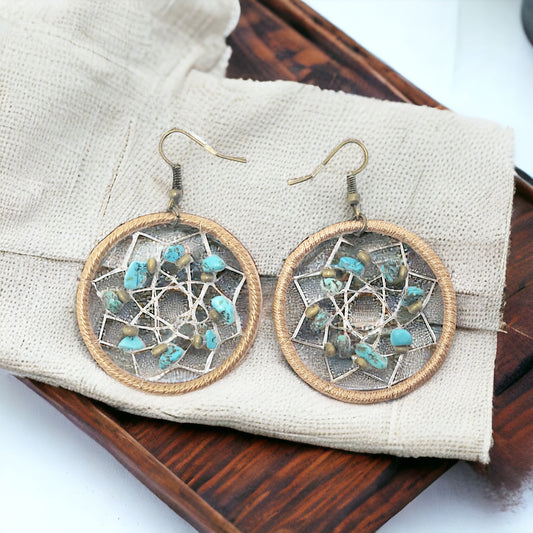 Turquoise Dreamcatcher Dangle Earrings – Boho Chic Jewelry