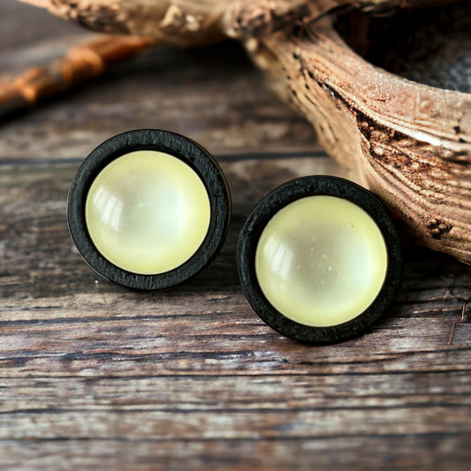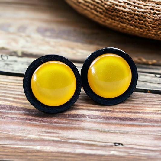 Yellow Resin Black Wood Unisex Stud Earrings - Stylish & Versatile Jewelry