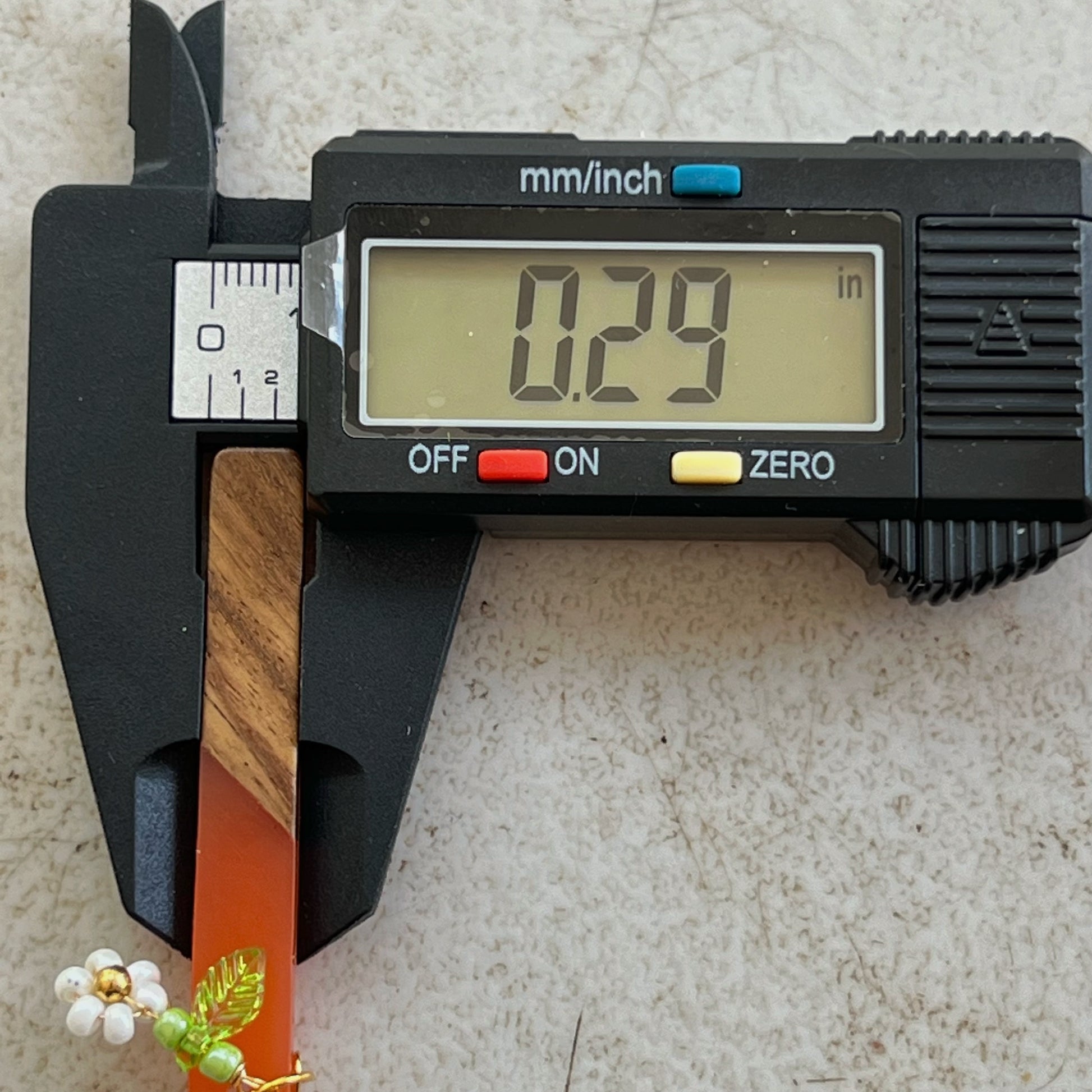 Lightweight, earthy, and a little whimsical—these handmade dangle earrings pair a warm orange resin bar with natural wood grain, topped with a tiny beaded white daisy and green leaf. An easy pop of color for everyday outfits, markets, and sweet gifting.