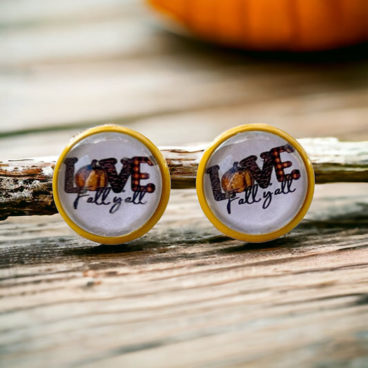 Aretes amarillos de acero inoxidable Love Fall Y'all Pumpkin