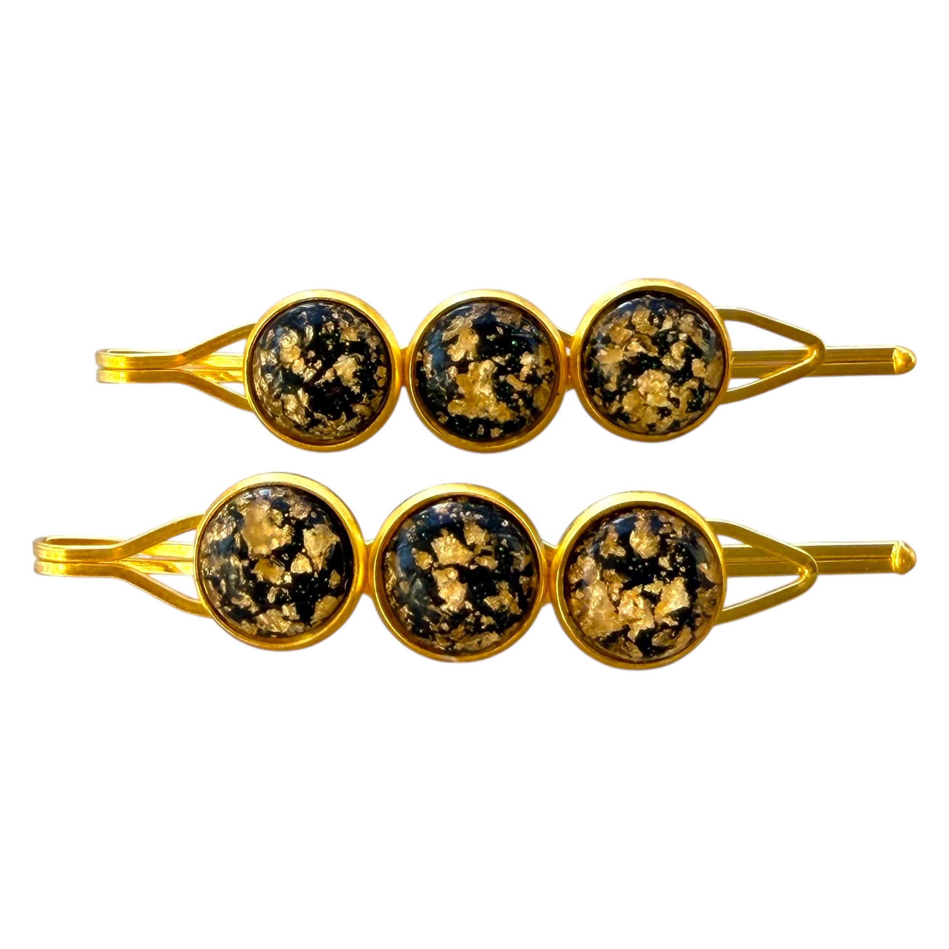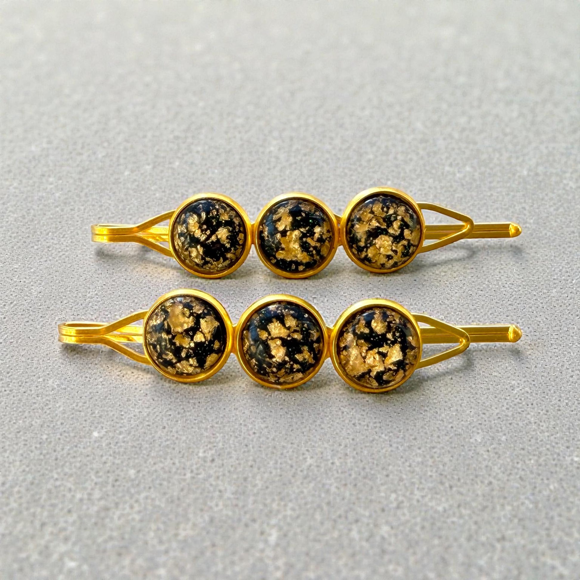 Black & Gold Foil Hair Pins – Handmade Glam Bobby Pin Set for Women