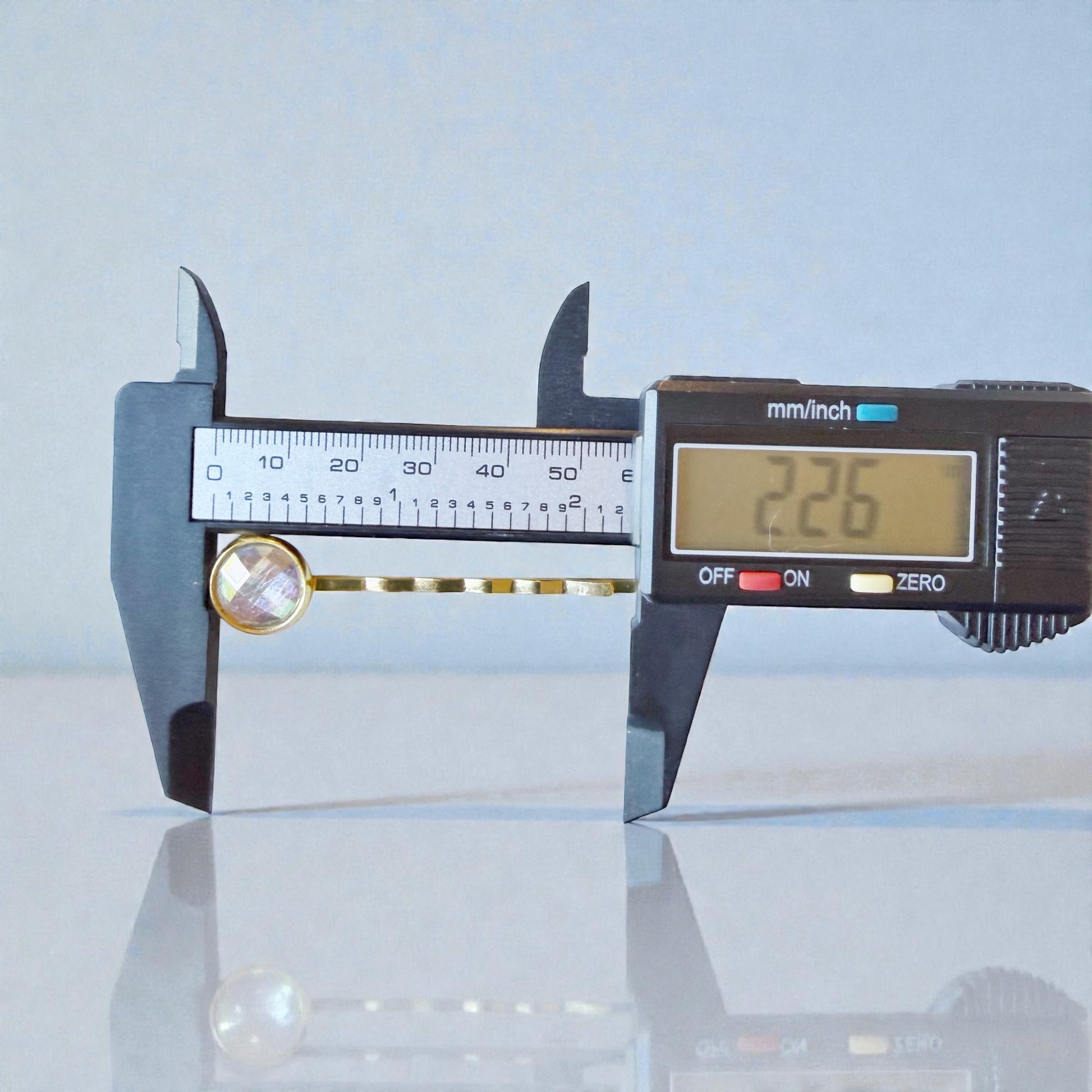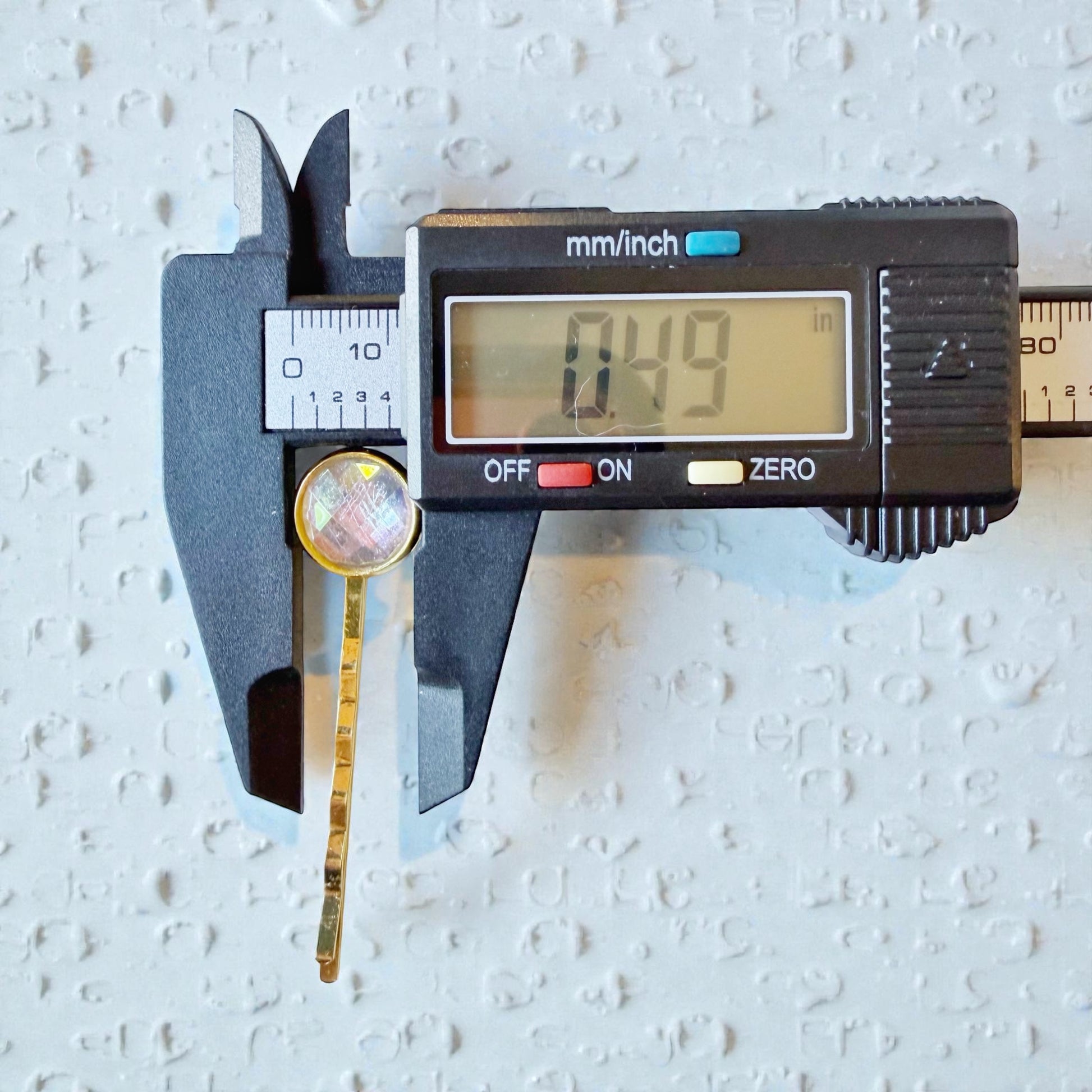 These handmade hair pins feature shimmering pastel acrylic tops set on sleek gold-tone bobby pins. The faceted finish catches the light with hints of pink, lavender, and aqua, adding a subtle glow to messy buns, half-up styles, and bridal looks.