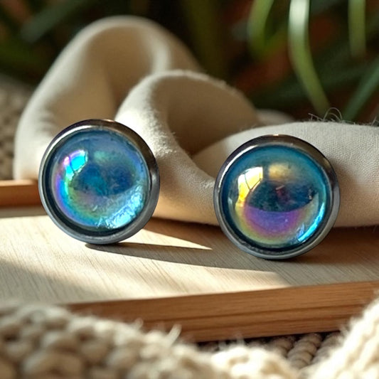 Iridescent Stud Earrings – Small Handmade Rainbow Dome Posts for Women