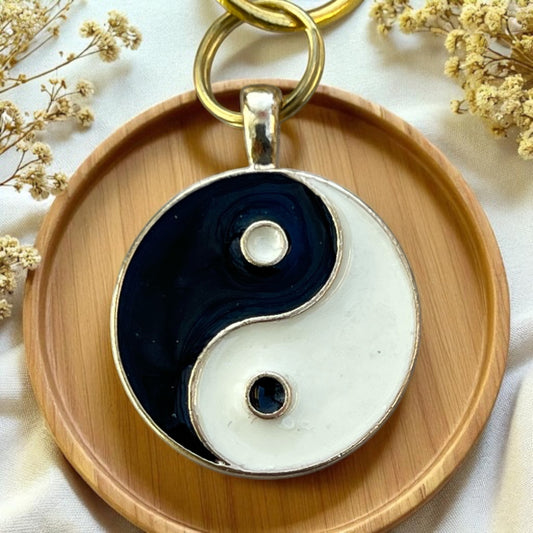 Yin Yang Purse Charm – Black & White Balance Keychain with Gold Clasp
