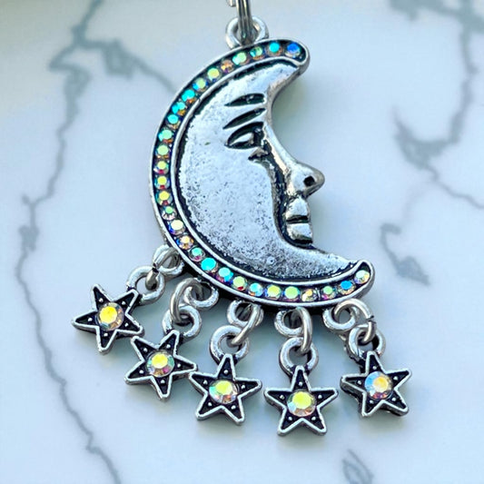 Moon Purse Charm – Celestial Crescent Keychain with Rhinestones