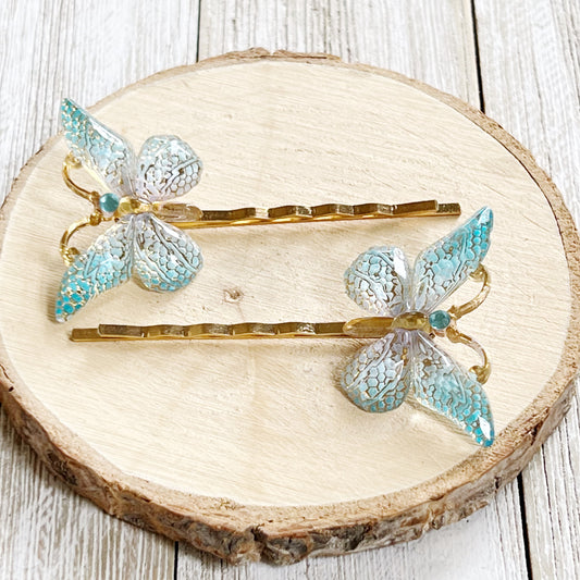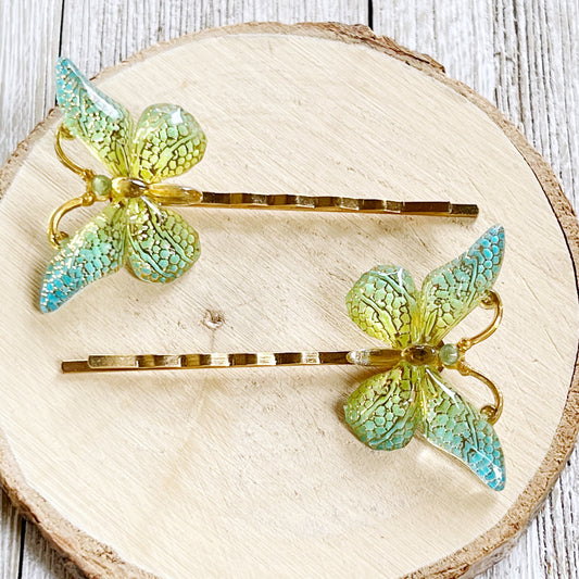 Blue, Green & Gold Butterfly Hair Pins - Colorful Hair Accessories