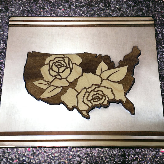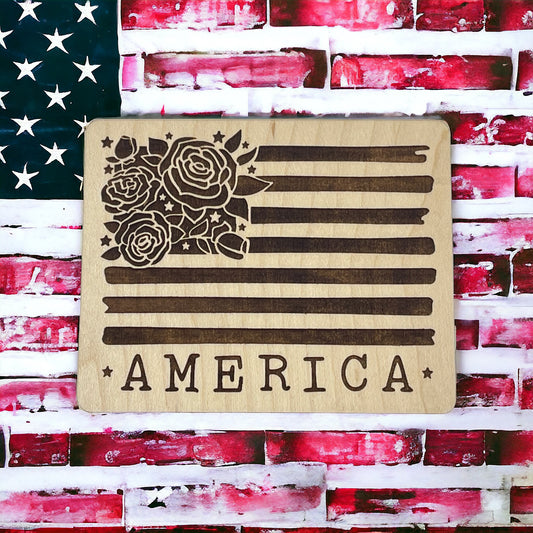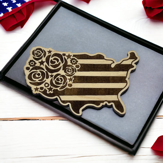 USA Rose Magnet – Floral Patriotic Wooden Home Decor
