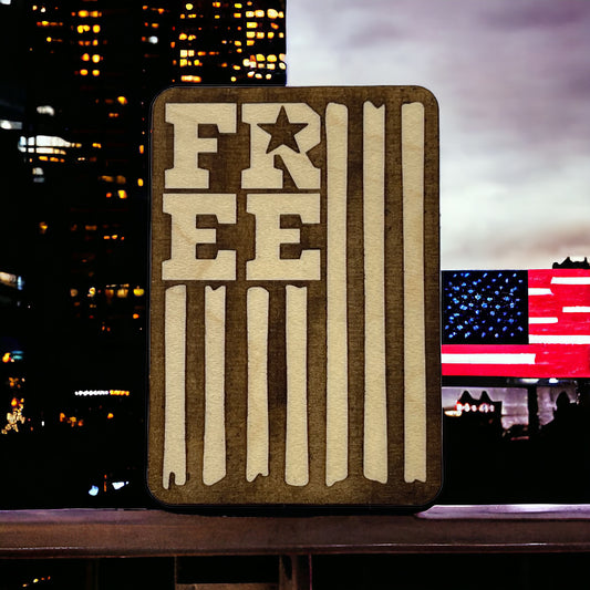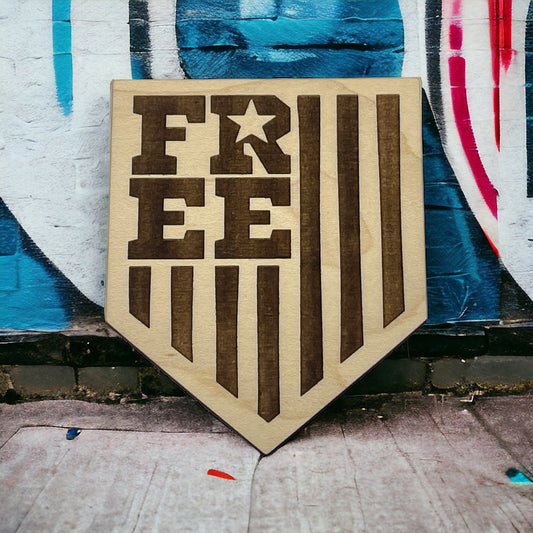 Bold Free Shield Magnet – Patriotic Wooden Decor Gift