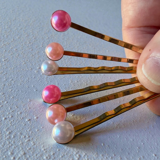 Pink & White Pearl Hair Pins – Set of 6 Feminine Bobby Pins