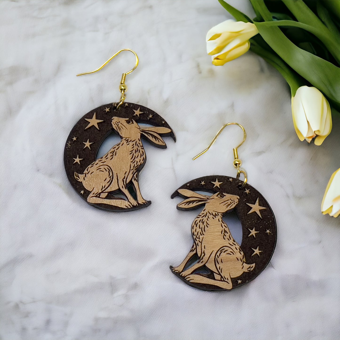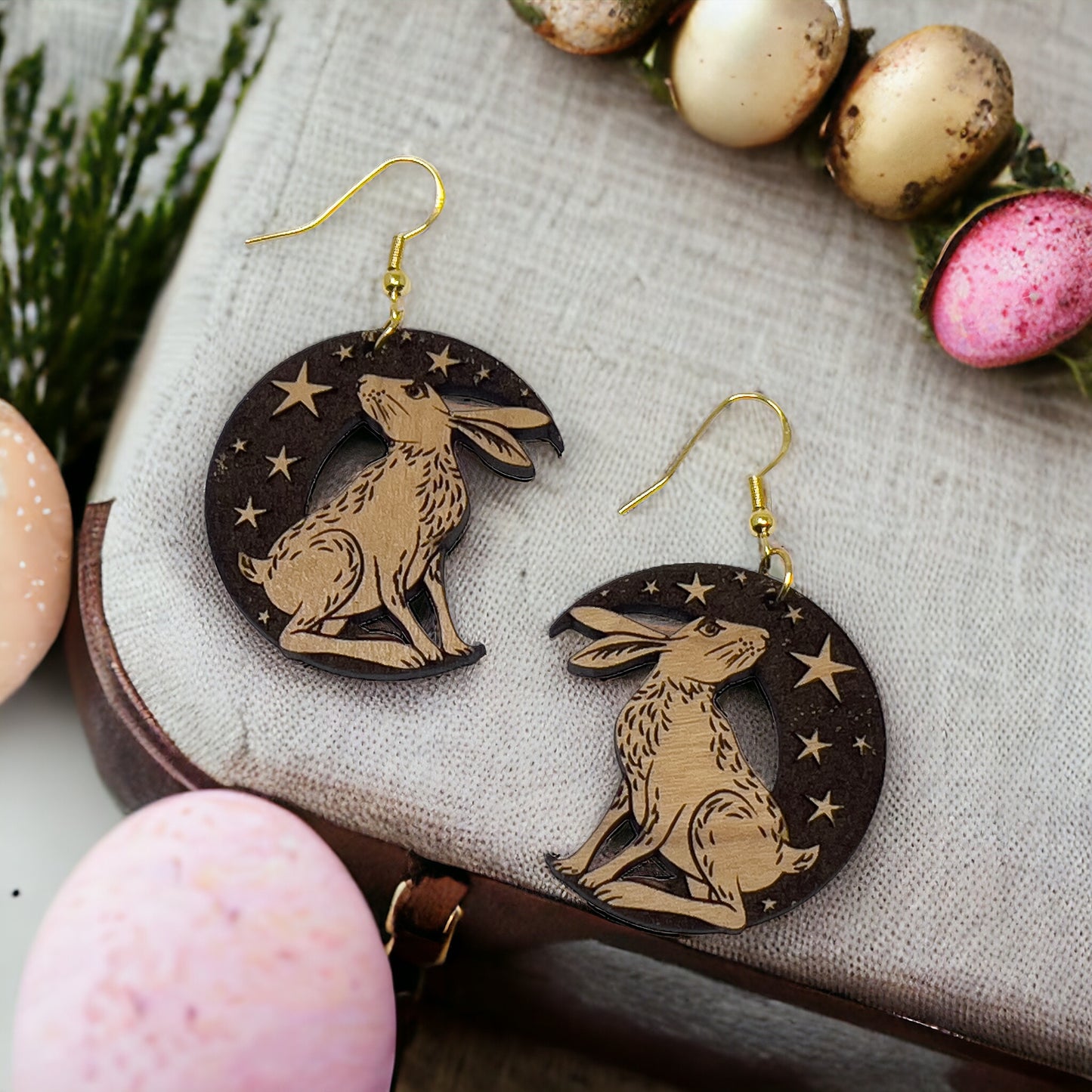 Discover the joy of customization and heartfelt expression with our Easter Wood Crescent Moon Bunny Earrings—where love, creativity, and style converge in a wearable work of art.