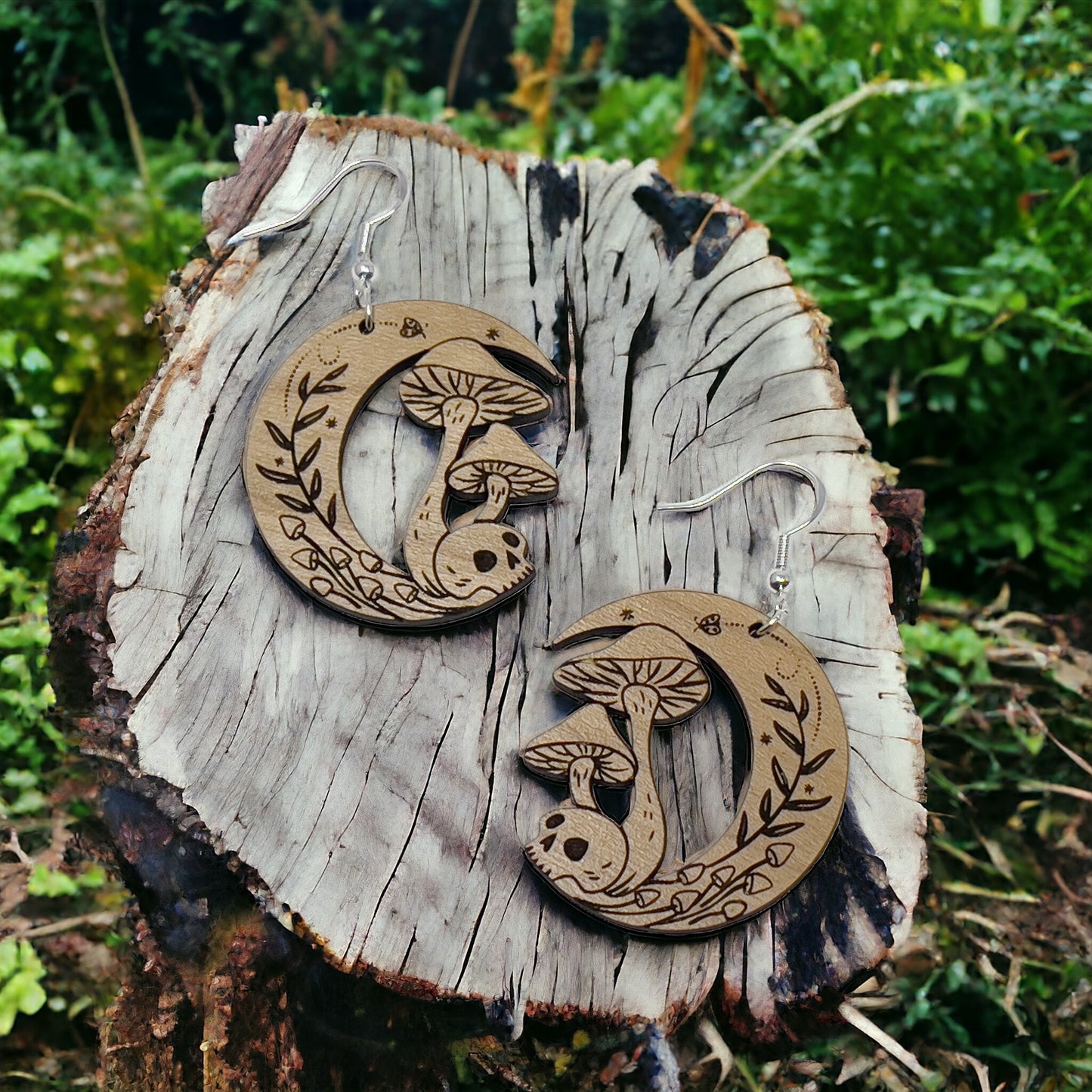 Mushroom Skull Moon Earrings – Woodland Whimsy Boho Statement Jewelry