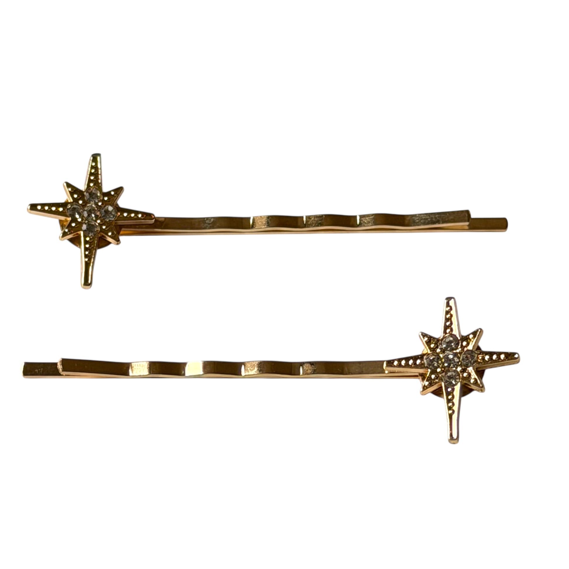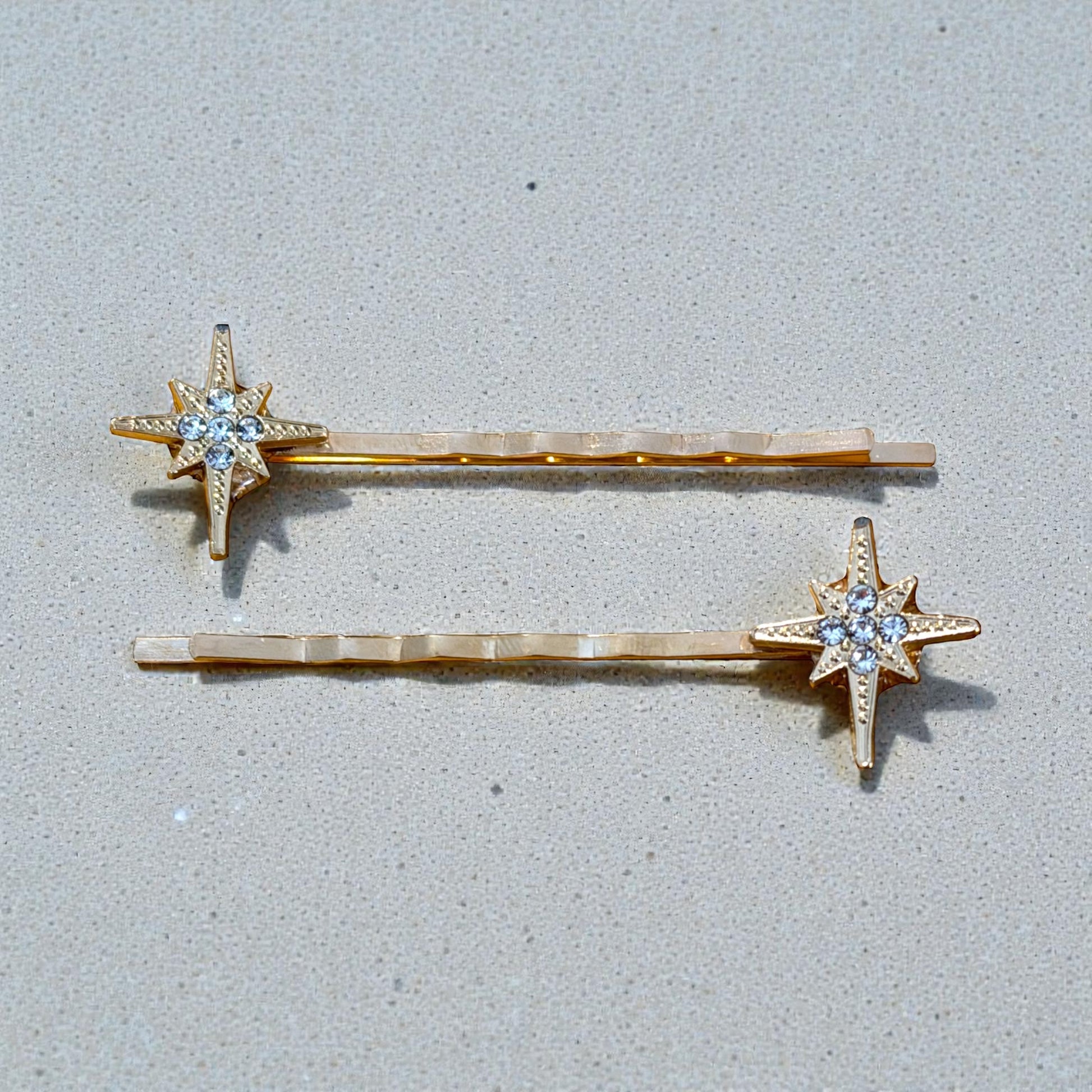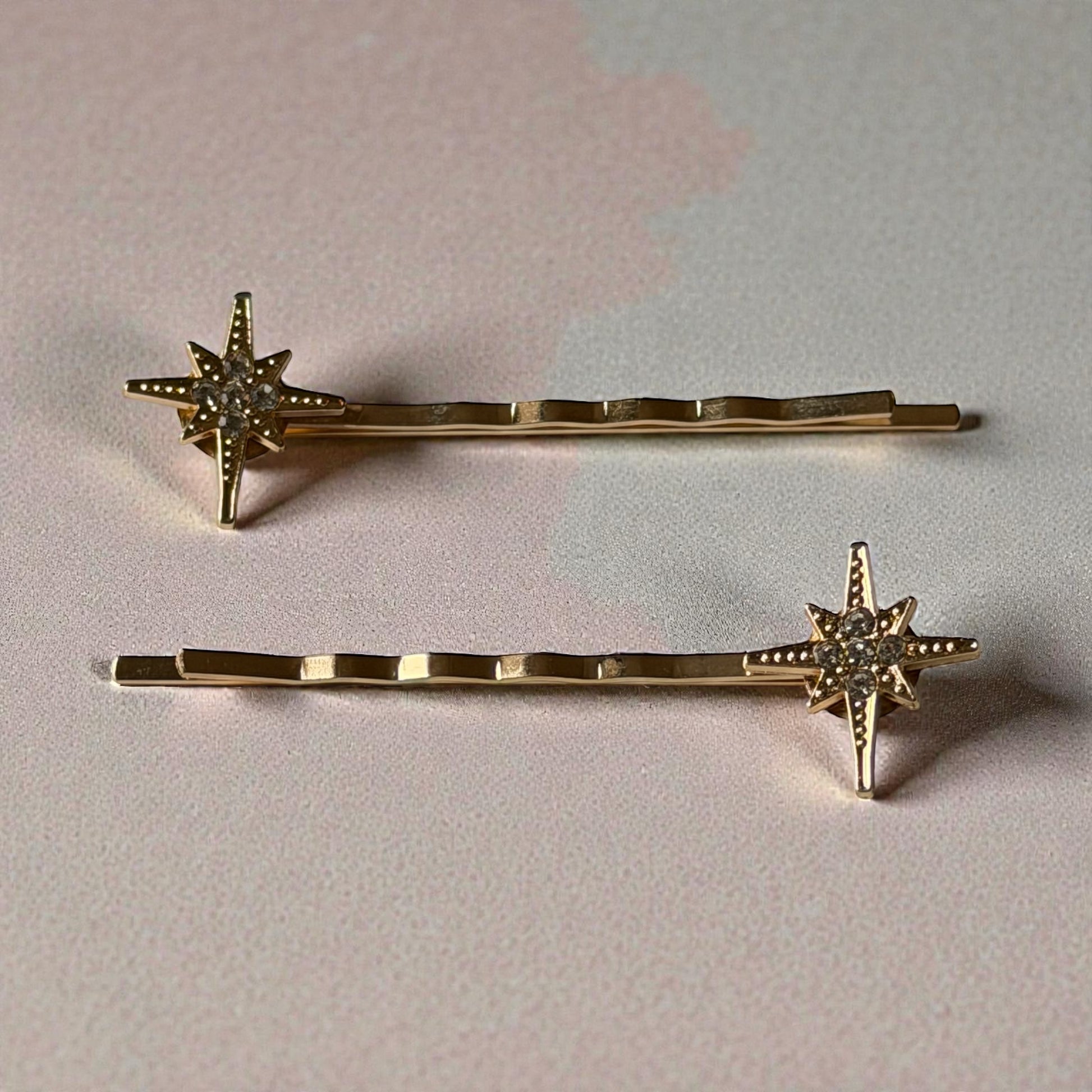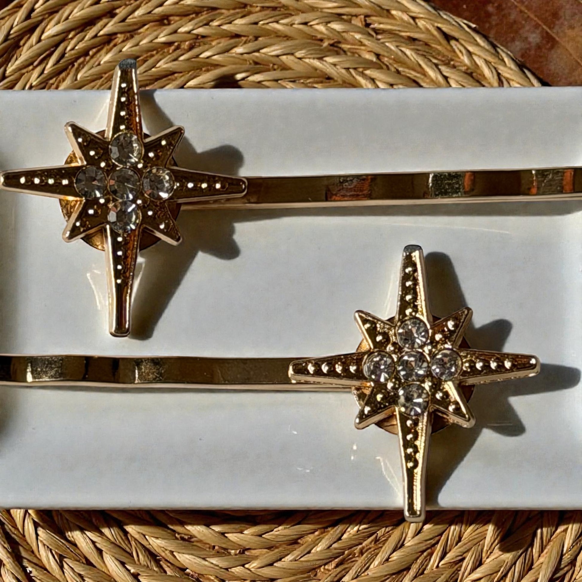 North Star Rhinestone Hair Pins – Gold Celestial Vintage Hair Clips