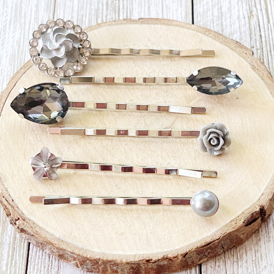 Gray Flower Rhinestone Hair Pins: Elegant Accents for Stylish Hairdos
