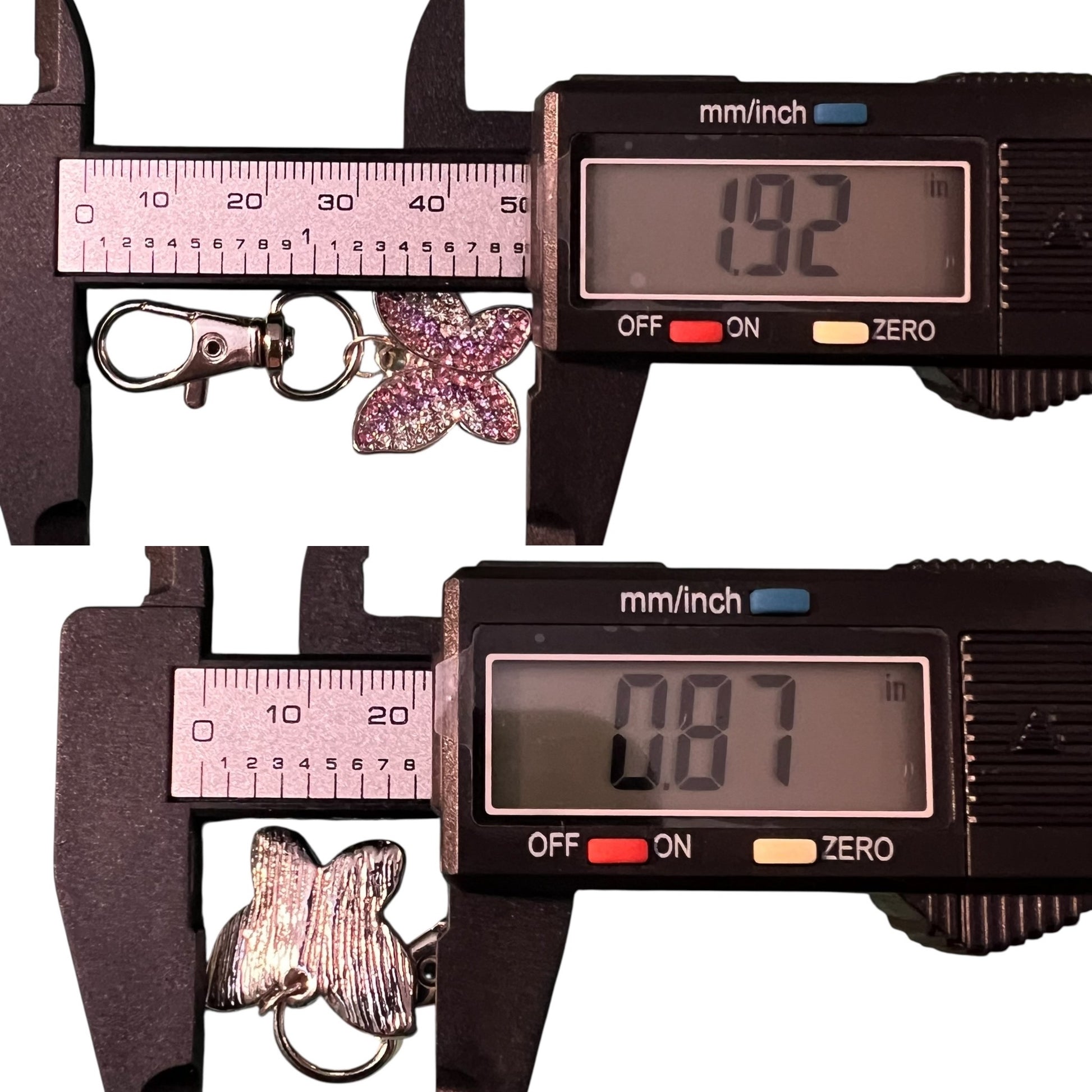Add a touch of whimsy to your outfit with our elegant, vibrant purple and pink butterfly purse charm. This unique accessory is sure to spark joy and inspire your inner free spirit. Elevate your fashion game with this eye-catching charm!
