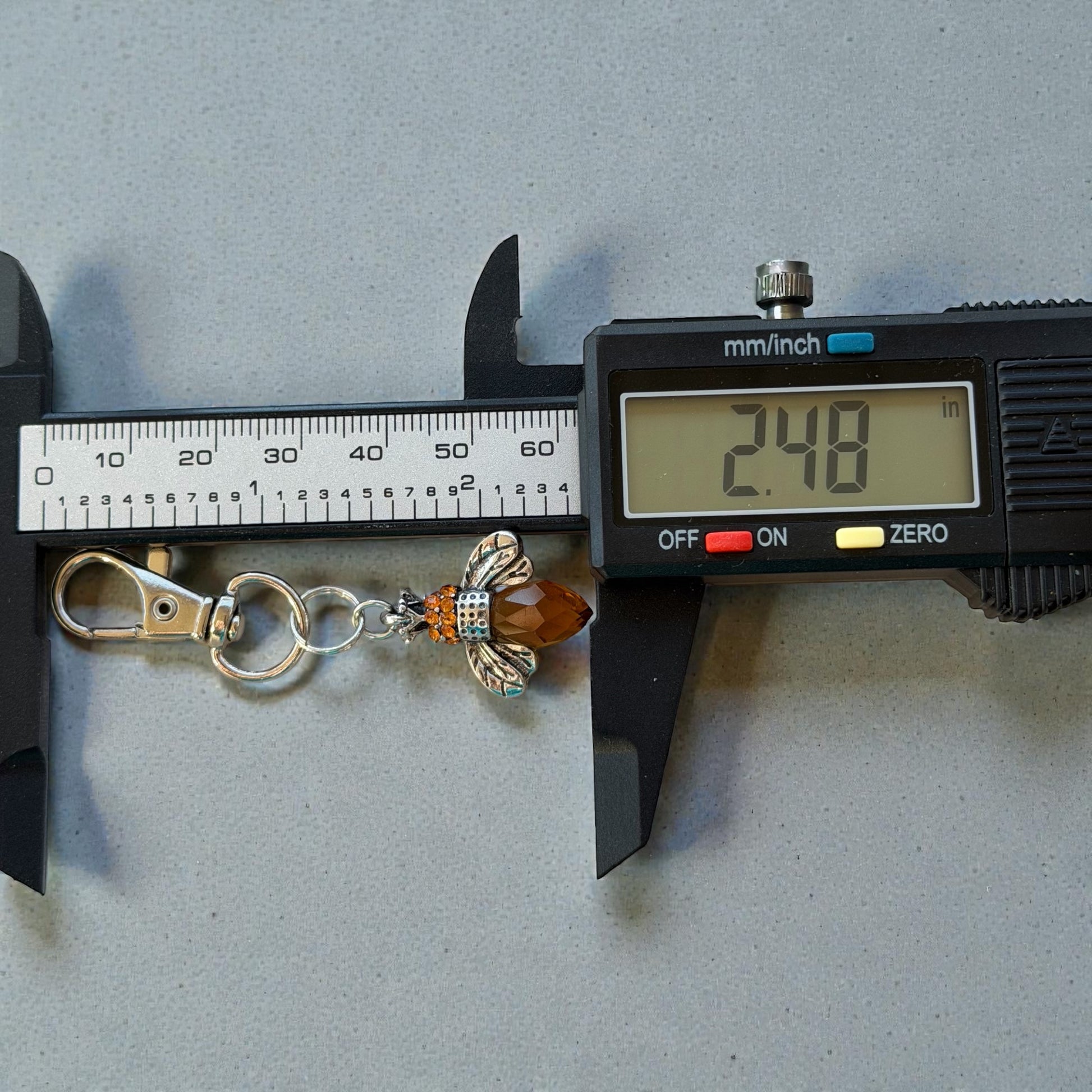 Amber Bee Purse Charm – Silver Boho Nature-Inspired Keychain