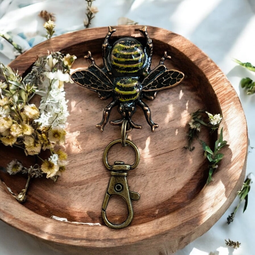 Hand Painted Bee Purse Charm – Vintage Copper Bee Keychain