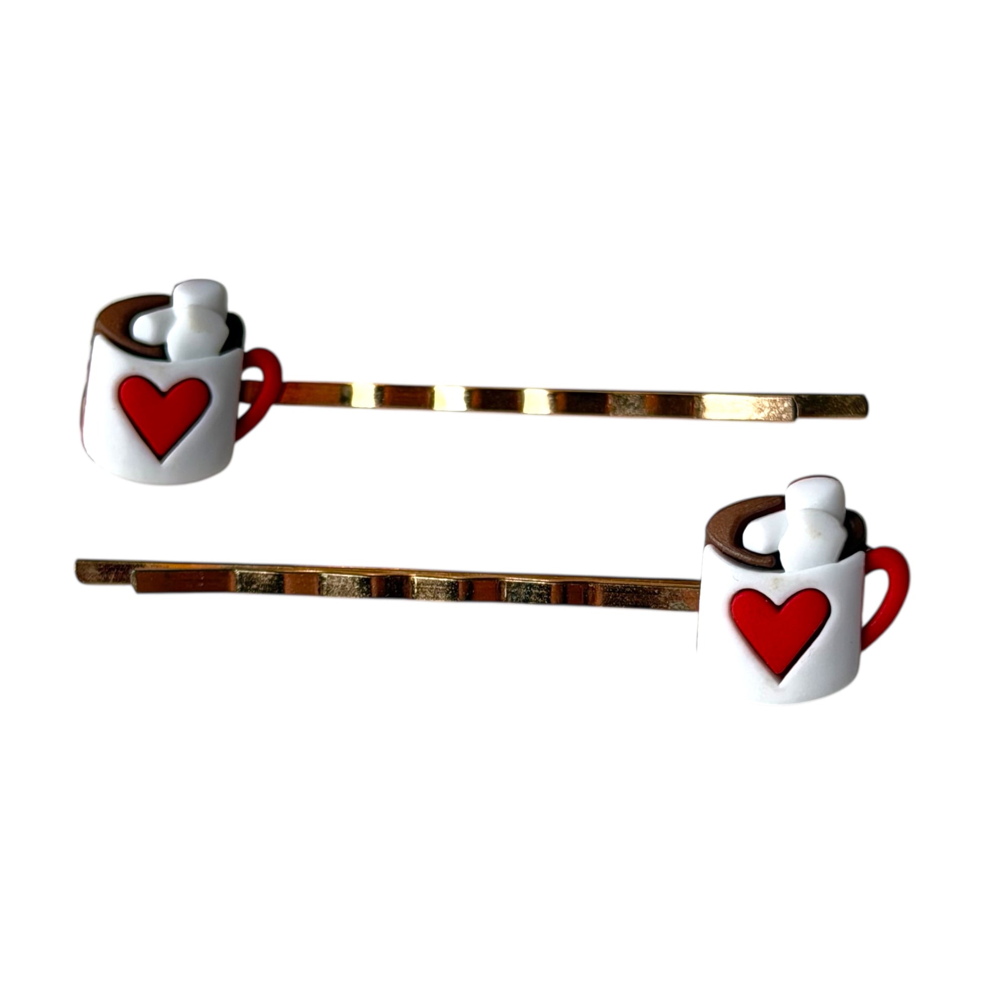 Hot Cocoa Heart Hair Pins – Cute Coffee Mug Bobby Pin Set for Women