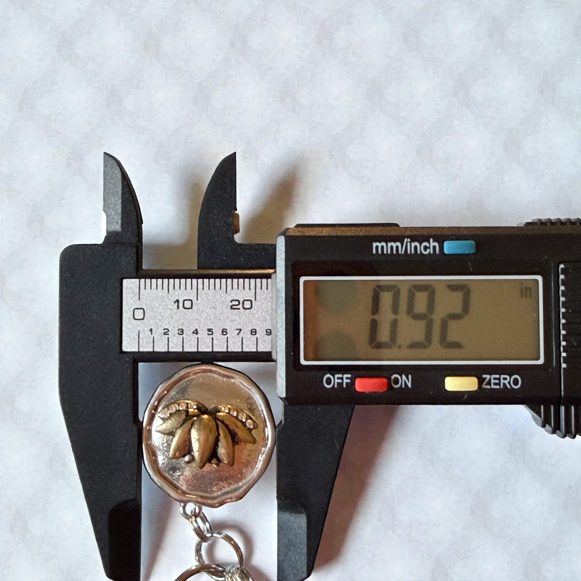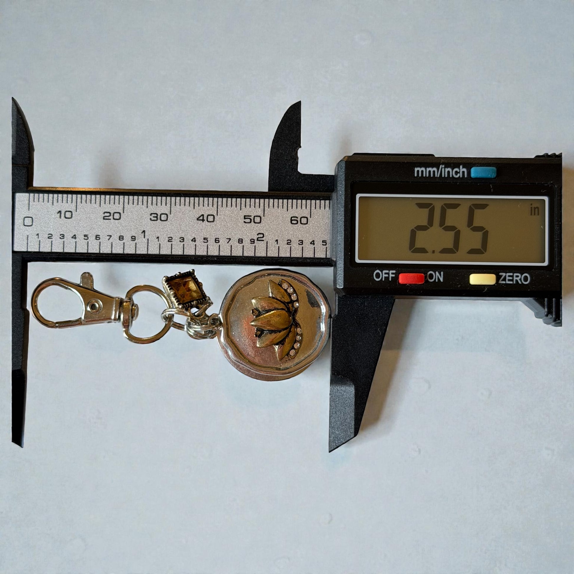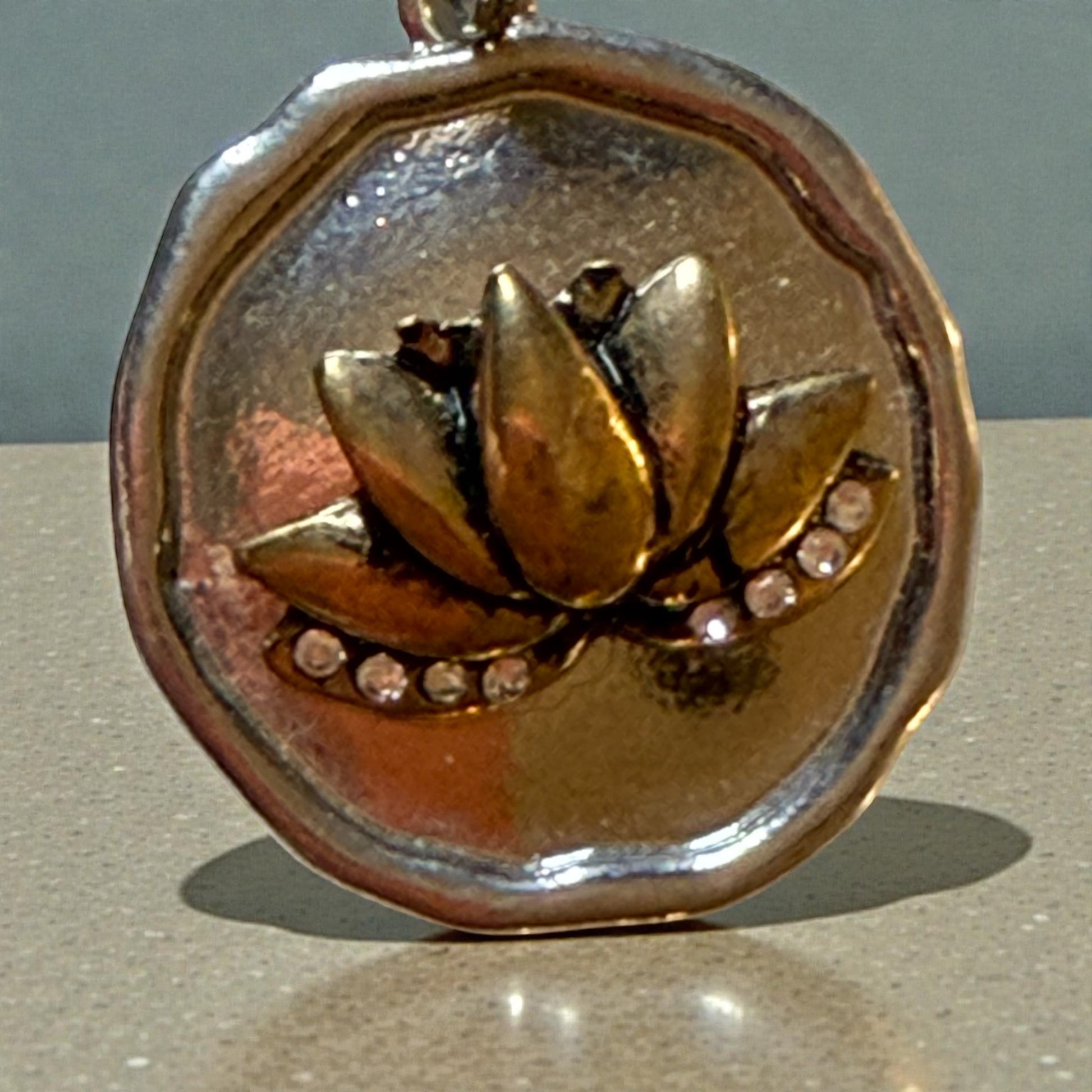 - Charm Size: Lotus & text discs approx. 0.92" across; gem charm approx. 0.26" wide