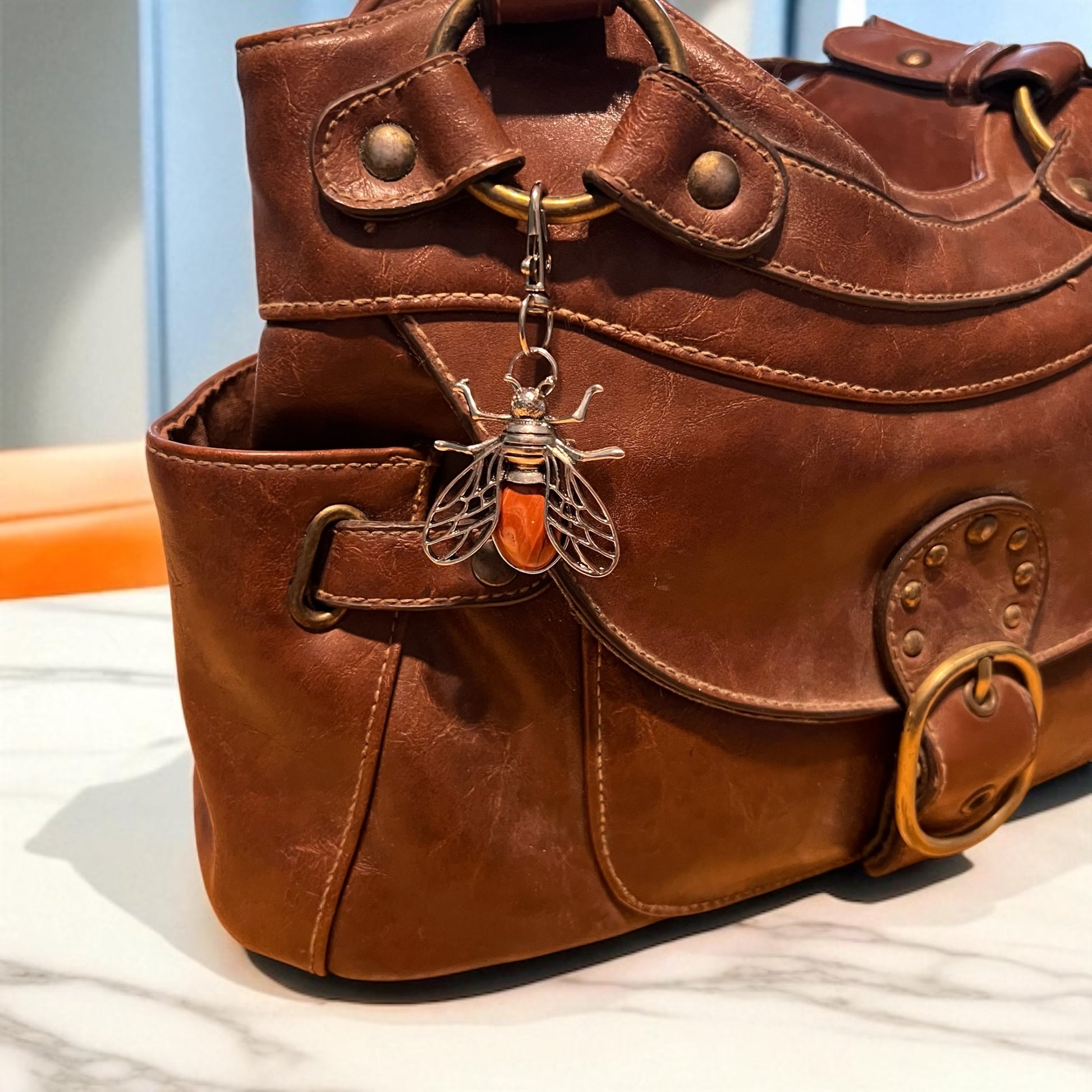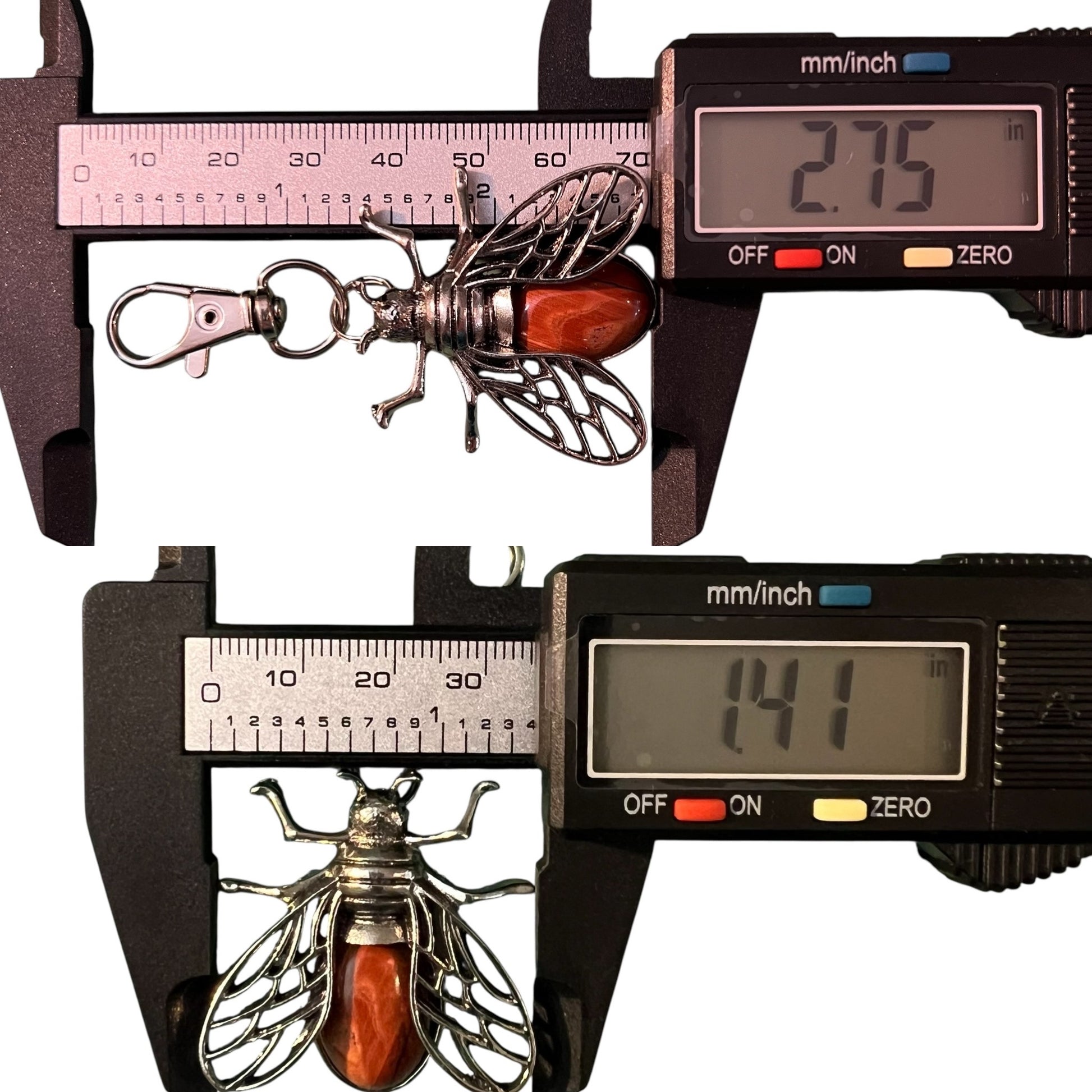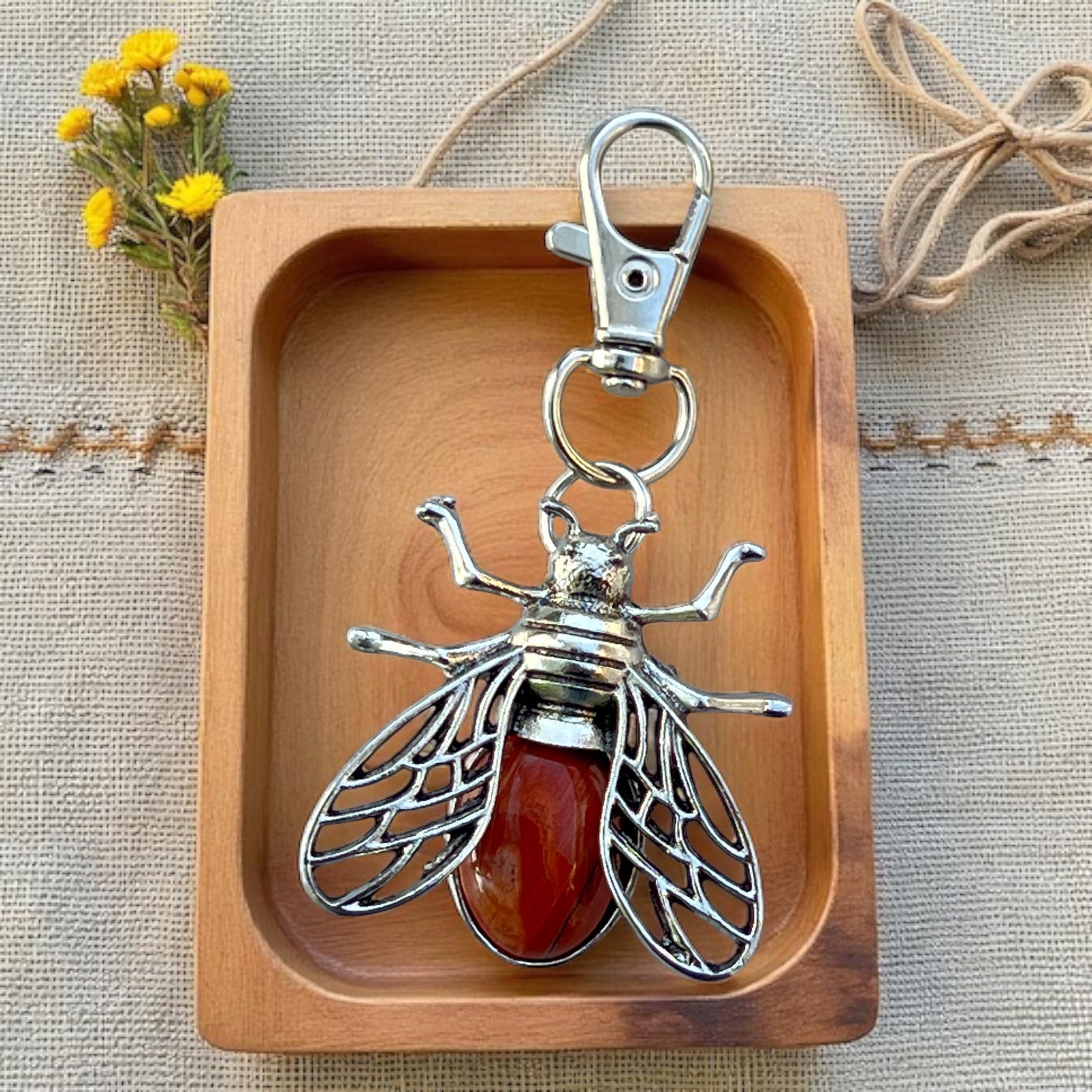 This red jasper bee purse charm brings a mix of earthy color and bright shine to your everyday carry. The rich red stone has a warm, grounded feel, while the silver wings keep things light and eye-catching.