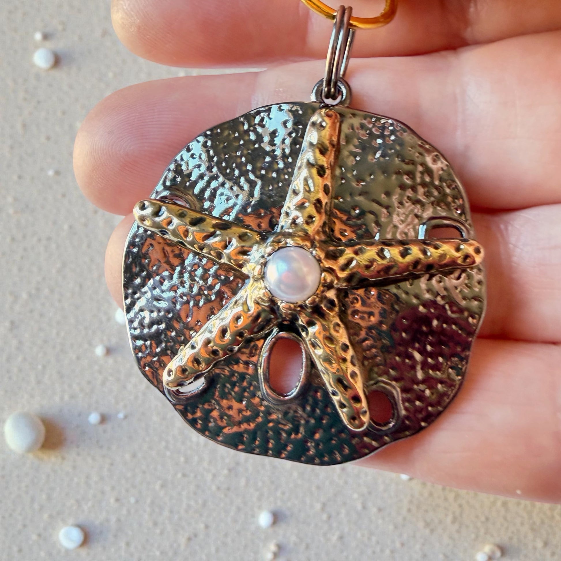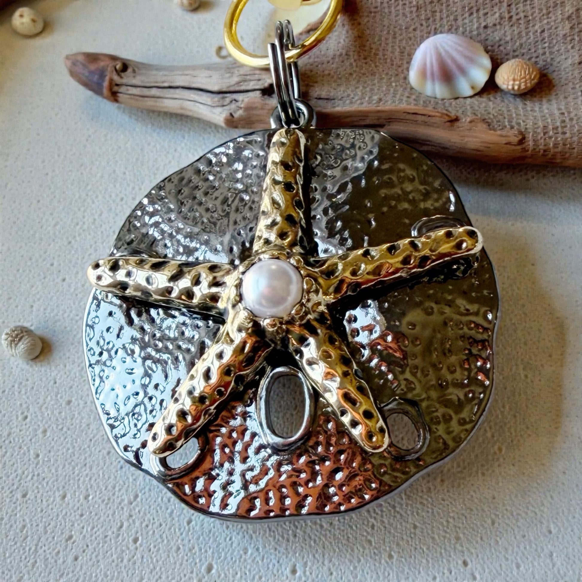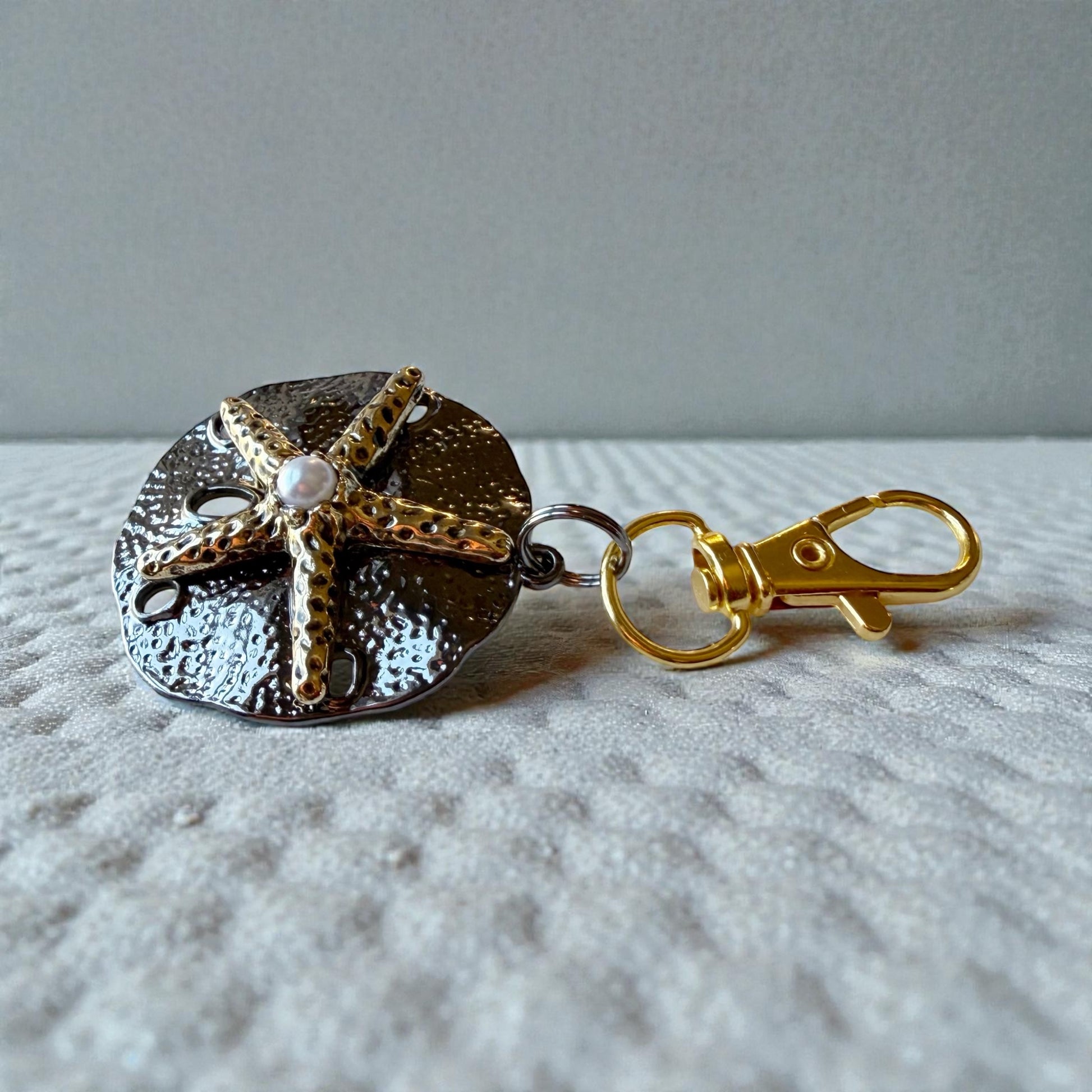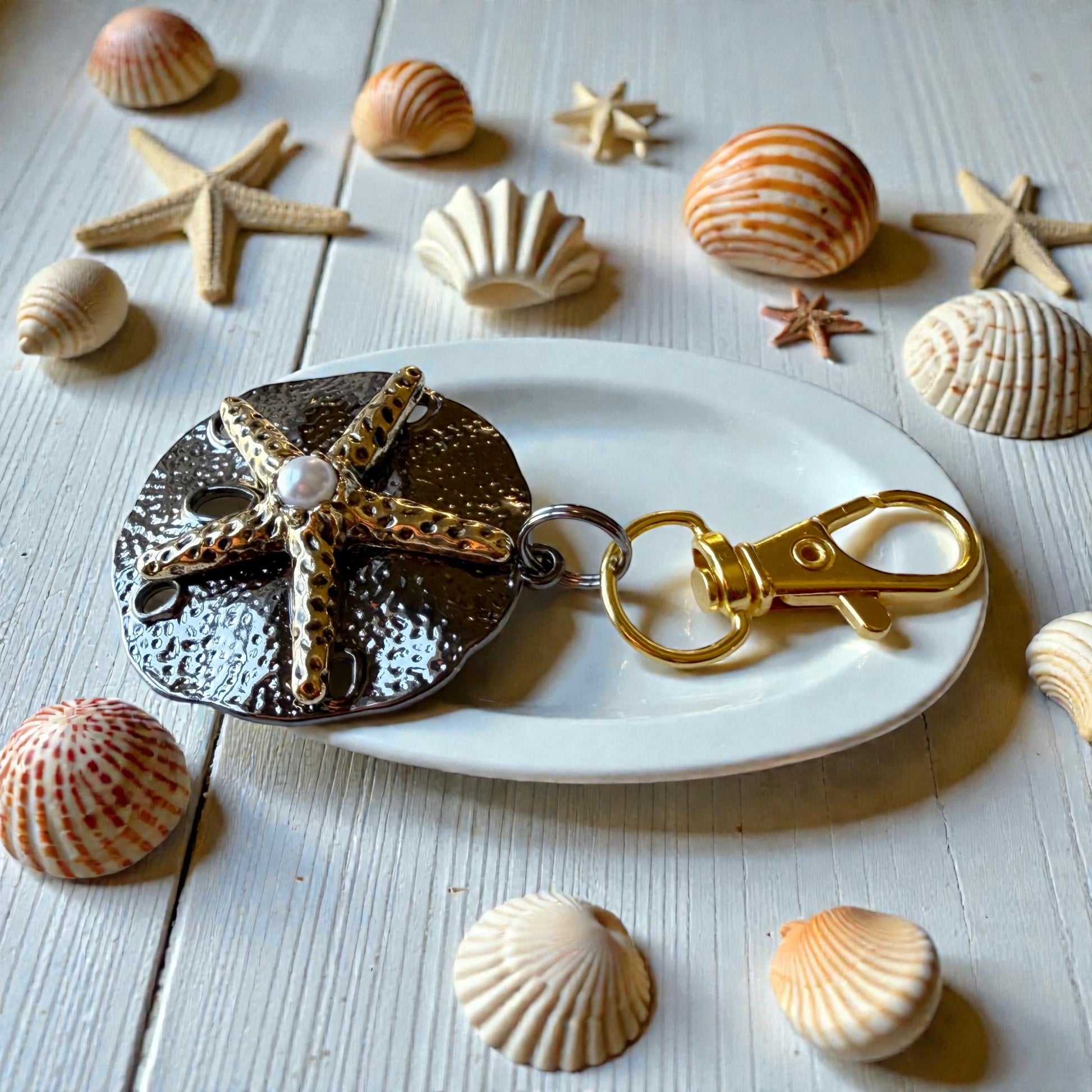 Sand Dollar Starfish Purse Charm – Coastal Boho Bag Accessory