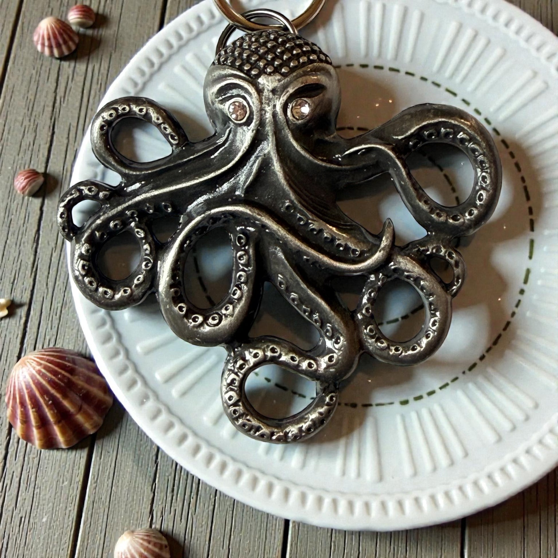 Silver Octopus Purse Charm – Coastal Nautical Bag Accessory