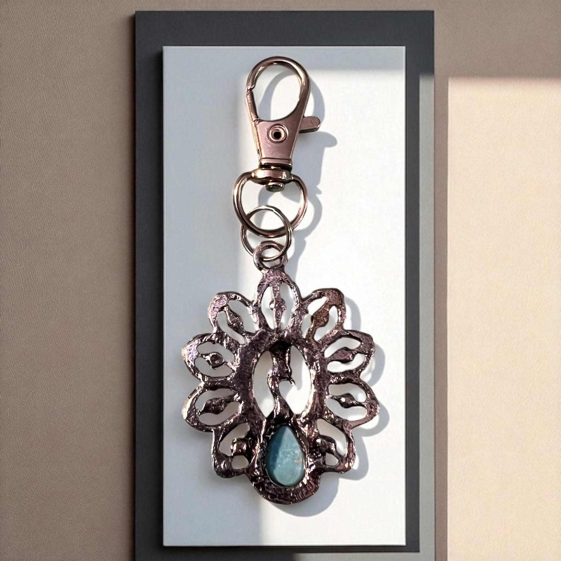 Turquoise Peacock Keychain – Handmade Boho Bag Charm