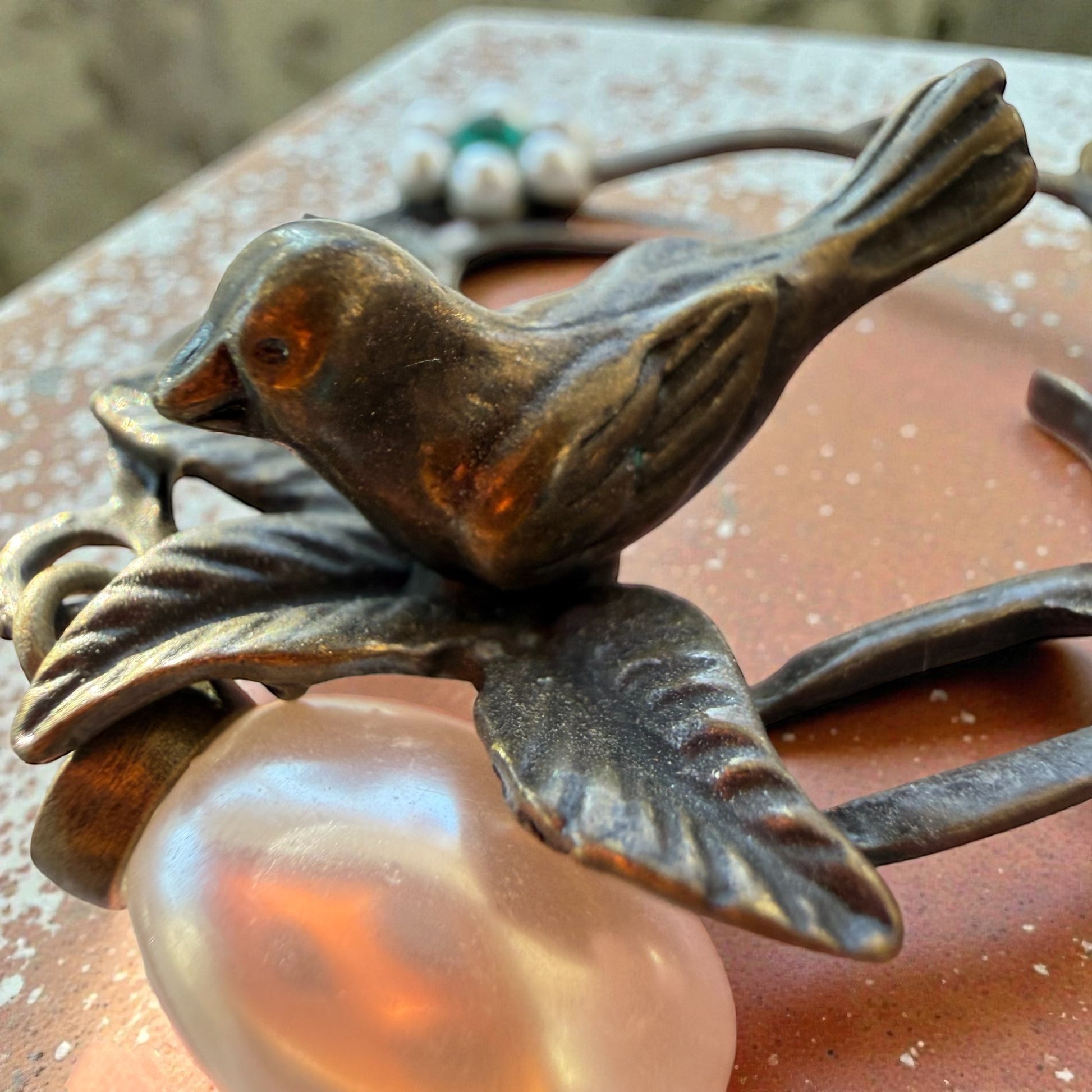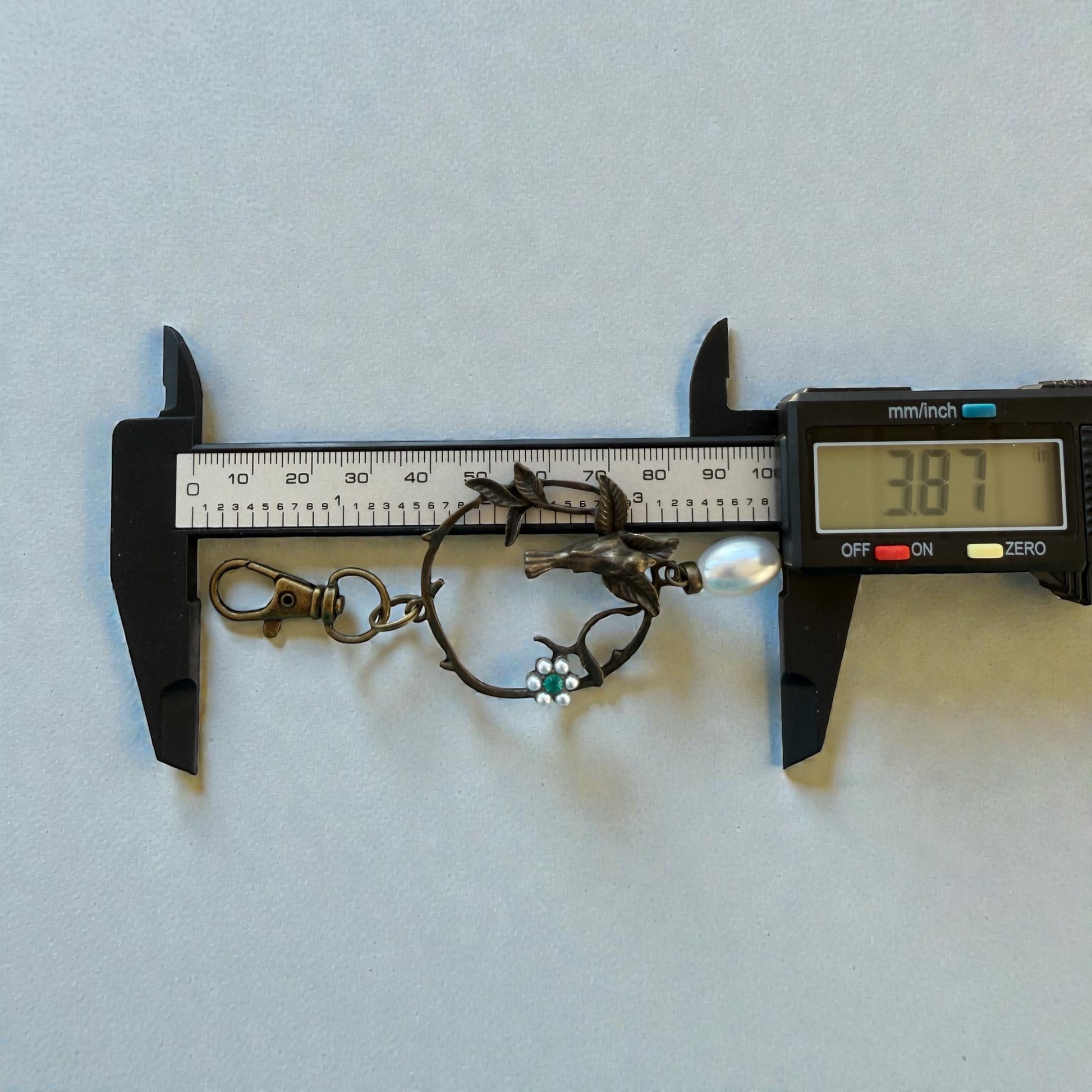 Vintage Bird & Pearl Purse Charm – Rustic Boho Branch Keychain
