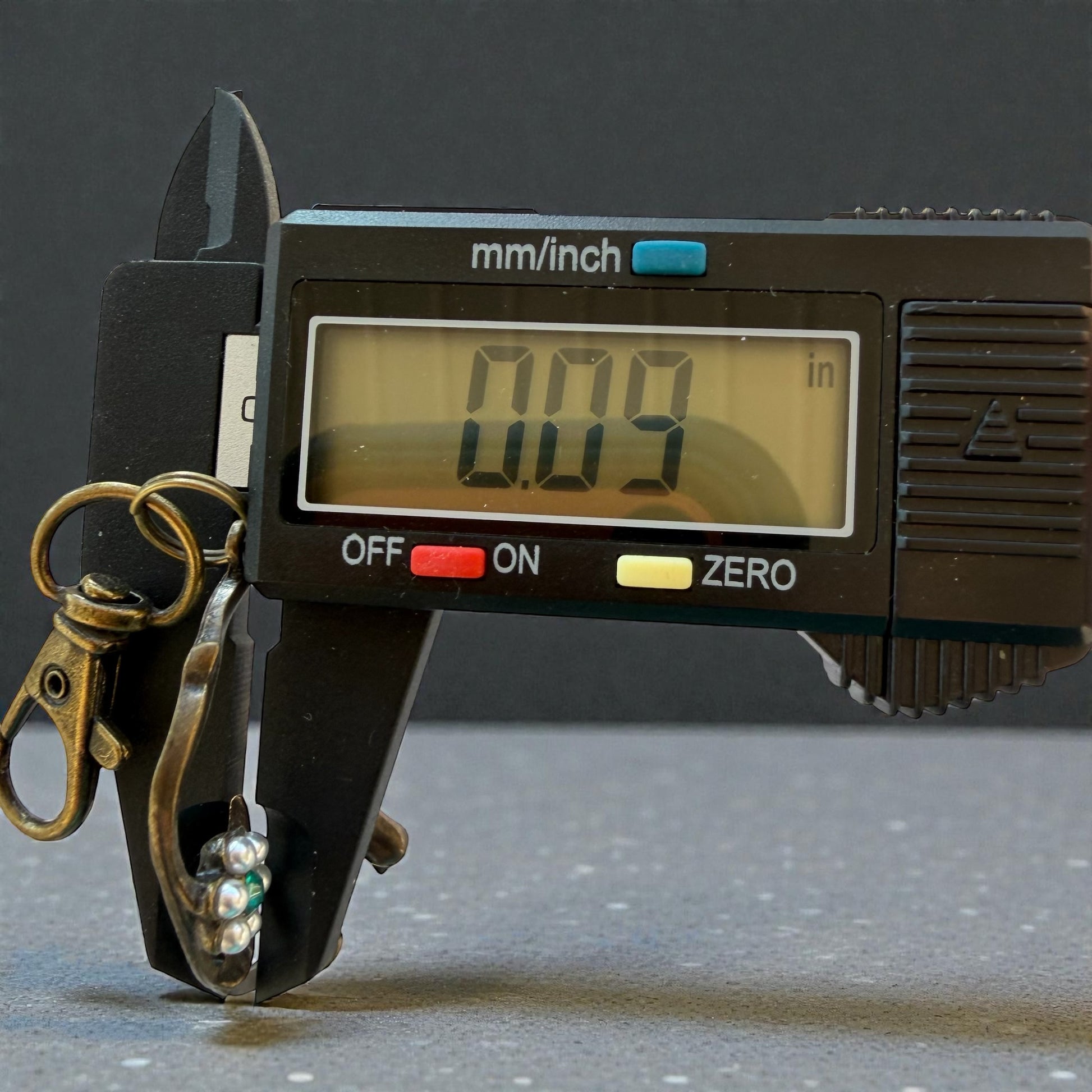 A: The full length with clasp is just under 4 inches. It’s statement-sized enough to notice on a bag, but still lightweight and easy to wear every day.